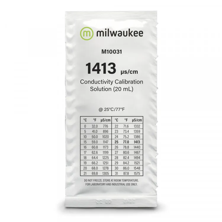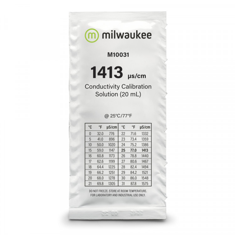 Milwaukee M10031B — профессиональный калибровочный раствор электропроводности 1413 µS/cm, предназначенный для точной настройки и проверки работы кондуктометров (EC-метров). Раствор изготовлен на основе эталонного раствора хлорида калия NIST и соответствует лабораторным стандартам качества.