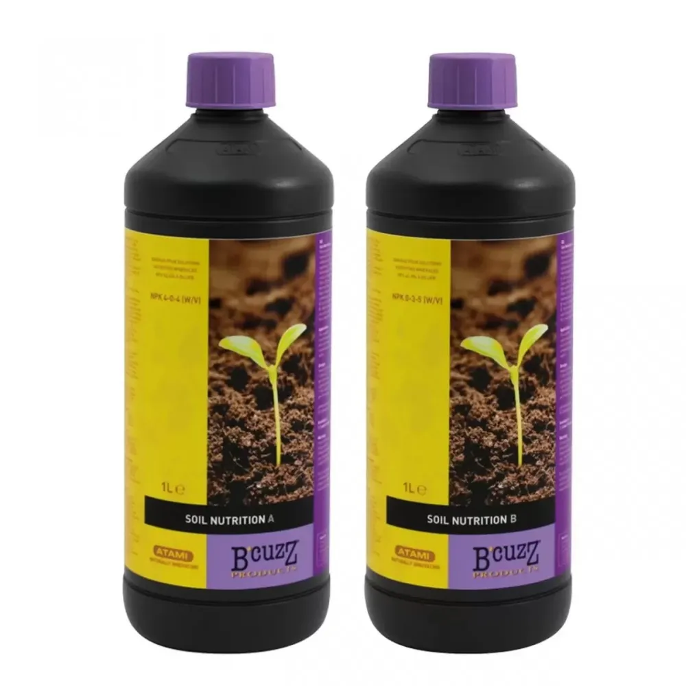 B’cuzz Soil - универсальное базовое удобрение, которое обеспечивает стабильный и биологический баланс субстрата. Оно содержит все необходимые питательные вещества для всего цикла роста и может использоваться как для внутреннего, так и для наружного выращивания растений. В рамках универсальных базовых удобрений B’cuzz есть несколько продуктов для разных фаз развития растения. Тем не менее, можно поиграть с дозировкой компонентов А и В. В фазу роста вы можете добавить немного больше А, а в фазу цветения вы можете добавить немного больше В.